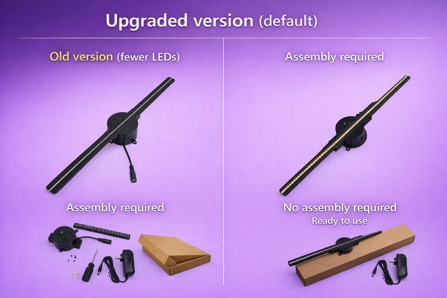 It will be shipped as the upgraded version, featuring denser LEDs and no assembly required.